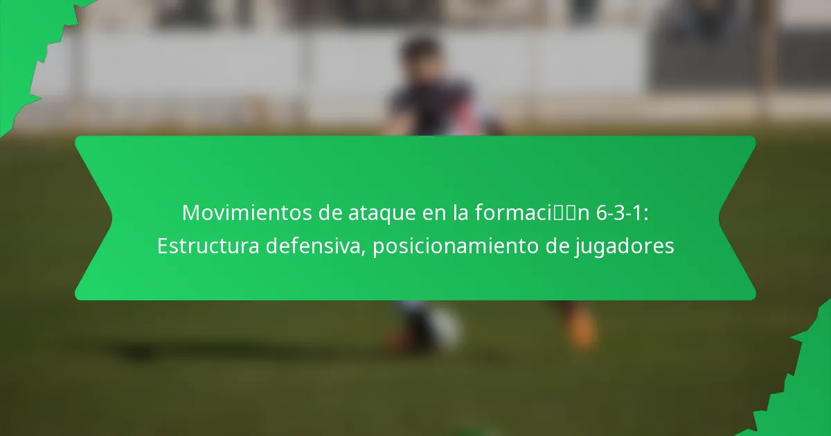 La formación 6-3-1 es una estrategia defensiva en el fútbol que enfatiza una sólida línea defensiva mientras permite contraataques efectivos. En esta configuración, los movimientos ofensivos son cruciales para crear espacio y oportunidades, requiriendo una precisa colocación de los jugadores y comunicación. Al utilizar estratégicamente el ancho del campo y explotar los huecos defensivos, los equipos pueden aumentar su potencial de anotación y transitar suavemente entre defensa y ataque.